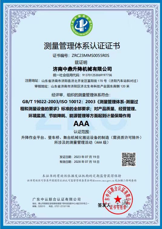 濟(jì)南中鼎升降機(jī)械有限公司位于液壓升降平臺(tái)之鄉(xiāng)山東濟(jì)南,是設(shè)計(jì)和制造液壓升降臺(tái)、高空作業(yè)平臺(tái)、液壓貨梯及其液壓升降設(shè)備的資深專家,更是當(dāng)今世界物料垂直運(yùn)輸設(shè)備供貨商的領(lǐng)跑者,多年來(lái)全心致力于為用戶提供更高效、更安全、更輕松的優(yōu)質(zhì)產(chǎn)品。公司擁有一支150人的高效團(tuán)隊(duì),其中工程技術(shù)人員30人,品管人員15人,資深技術(shù)工人80人。公司開創(chuàng)前期一直從事外貿(mào)代加工產(chǎn)品,多年來(lái)跟德國(guó),日本等知名機(jī)械行業(yè)有著廣泛合作,年出口額1000萬(wàn)美金以上,服務(wù)客戶遍及全球。近年來(lái)公司戰(zhàn)略調(diào)整,服務(wù)重心回歸...