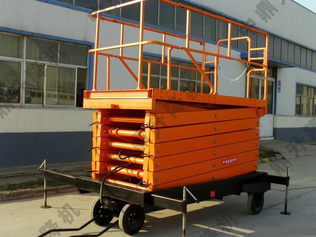 牽引式全自行升降機有人工牽引式全自行升降機、電動牽引式全自行升降機,另備有手壓泵,供停電時使用,具有移動靈活、升降平穩、操作方便、載重量大等特點。
